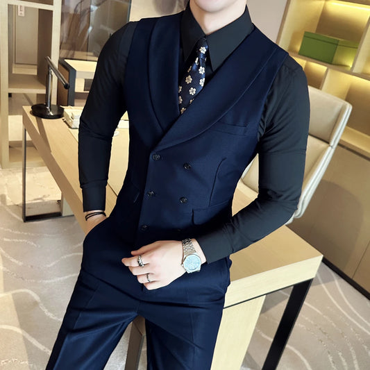 ( Vest + Pants) Men Luxury Double Breasted Design 2 pieces Formal Groom Wedding Dress Vest Set Fashion Mens Club Singer Clothing